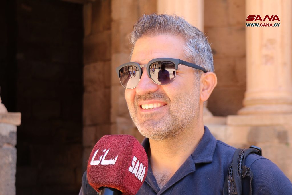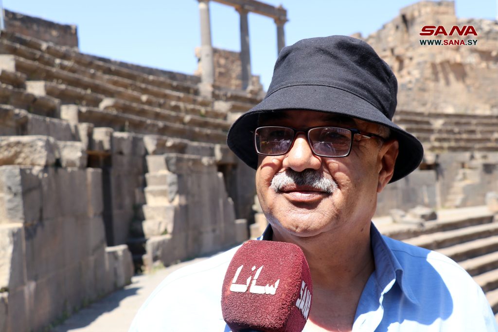 مدير السياحة ياسر السعدي أوضح أن مدينة بصرى تشهد زيارات عدة بعد رفع إجراءات الحجر الصحي على خلفية جائحة كورونا مشيراً إلى أن مديرية السياحة تقوم بإجراءات للترويج السياحي للمواقع الأثرية في المحافظة بما يعيد الألق إليها.