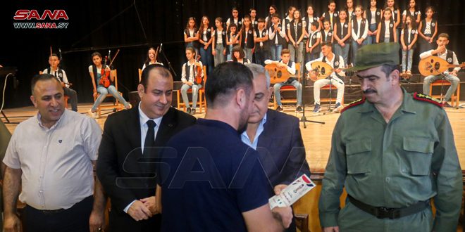 وقدمت خلال الحفل فرقة سوريا (بلدنا كورالاً) موسيقياً تضمن أغاني ومعزوفات وطنية ثم ألقت الطالبة شهد فراس علي كلمة المتفوقين من أبناء الشهداء تحدثت فيها عن مآثر الشهداء وتضحياتهم في سبيل الوطن معاهدة باسم زملائها الاستمرار بدرب التفوق وخدمة الوطن.
