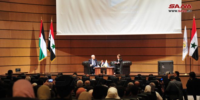 وأعرب أبو غزالة عن فخره لوجوده بدمشق أقدم عاصمة في التاريخ ولقائه بطلاب وأساتذة جامعة دمشق العريقة والشعب السوري العظيم الذي له الفضل الكبير على قضية فلسطين.
