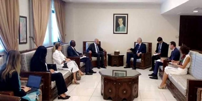 بحث الدكتور بشار الجعفري نائب وزير الخارجية والمغتربين مع طارق تلاحمة نائب مدير مكتب الأمم المتحدة لتنسيق الشؤون الإنسانية لمنطقة الشرق الأوسط وشمال إفريقيا “أوتشا” والوفد المرافق ضرورة التزام جميع الدول والمنظمات الدولية بالقرارات الصادرة عن مجلس الأمن.