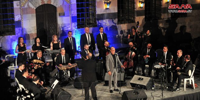 من بين الياسمين الدمشقي في قصر العظم فاح عبق استحضره ابن حلب الشهباء الفنان صفوان العابد من مدينته التي صدرت أجمل الأصوات والكلمات فنسج ليلة مليئة بذكريات اللحن الأصيل مع فرقته الموسيقية بقيادة الموسيقي محمد زعلول.
