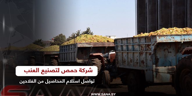 حمص-سانا تواصل شركة حمص لتصنيع العنب (زيدل) استلام محصول العنب العصيري من الفلاحين بموجب عقود …