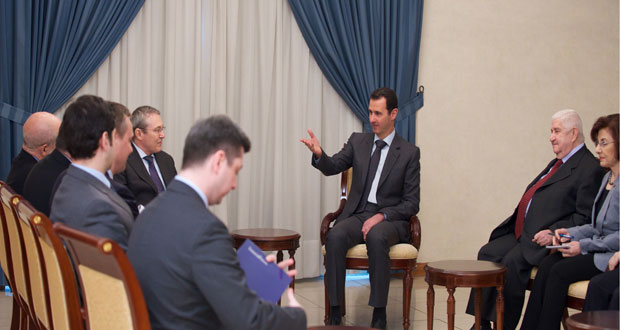 وأكد الرئيس الأسد حرص سورية على مواصلة العمل لإنجاح الجهود الروسية وأن الخطوة الاهم في تحقيق ذلك هي الاتفاق على جدول أعمال يحدد منهجية العمل وأسس الحوار والآليات الكفيلة بتحقيق أهدافه مشيرا إلى ثقة الحكومة والشعب في سورية بالقيادة الروسية وبجهودها الحثيثة لإيجاد حل في سورية على الرغم من المعوقات التي تضعها بعض الدول الإقليمية والغربية في طريق إيجاد ذلك وخاصة ما يتعلق بمواصلة دعمها للتنظيمات الإرهابية على الصعد كافة.