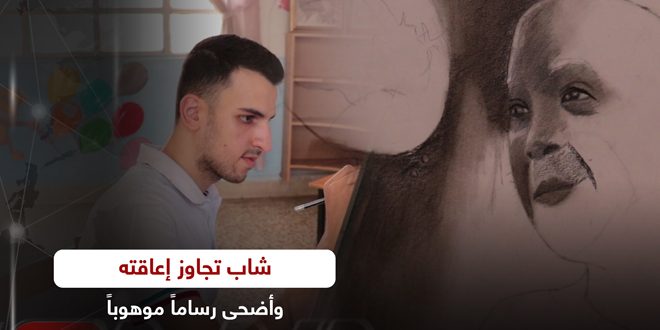 الشاب عبيدة طربوش تجاوز إعاقته بالصمم وضعف البصر وأضحى فناناً موهوباً في الرسم