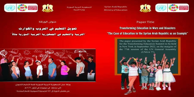 وخلصت هذه المشاورات إلى إنجاز ورقة عمل سورية بعنوان “تحويل التعليم في ظل الحروب والكوارث /التربية والتعليم في الجمهورية العربية السورية مثالاً/ باللغتين العربية والإنكليزية.