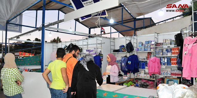 ومن السورية للتجارة أكد حسن الحلو أن المؤسسة تقوم بالبيع دون أي ربح حيث تشمل المنتجات التي تعرضها في جناحها جميع مستلزمات المدرسة من ألبسة وقرطاسية ومواد غذائية وجعب مياه وغيرها من المنتجات التي ييسر توافرها في مكان واحد على المستهلك عناء التنقل بين الأسواق داعياً جميع الشركات إلى الاستمرار بتخفيض أسعار منتجاتها مراعاة لذوي الدخل المحدود.