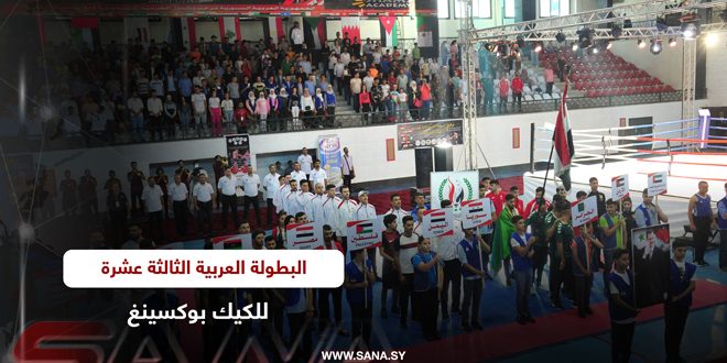 دمشق-سانا افتتحت فعاليات البطولة العربية الثالثة عشرة للكيك بوكسينغ اليوم في صالة الجلاء الرياضية بدمشق