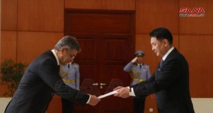 وأعرب خدام عن الشكر لمواقف الصين تجاه سورية في كل المجالات السياسية والإنسانية وما تقدمه من مساعدات للشعب السوري لتجاوز أزمته وانعكاسات الحرب والحصار الجائر المفروض عليه.