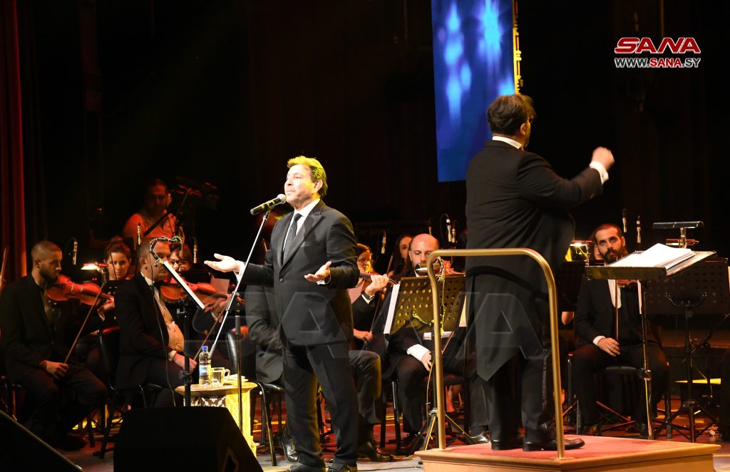 وقطف أيقونة الغناء العربي أجمل أغانيه بباقة حاضرة في قلوب ووجدان الجمهور العربي وحملها السلام والمحبة لينشرها في دمشق قلب العروبة النابض فأطرب بحنجرته الذهبية وحضوره الرصين عاشقيه الذين تناقلوا فنه جيلاً بعد جيل ومنها (لسا بتسألي- ياريتني- شاور- أصاحب مين- ياريتك معايا ياحبيبي) حيث تفاعلوا معه بالغناء والتصفيق وتعالت أصوات هتافاتهم مع أغنية (بحبك أنا).