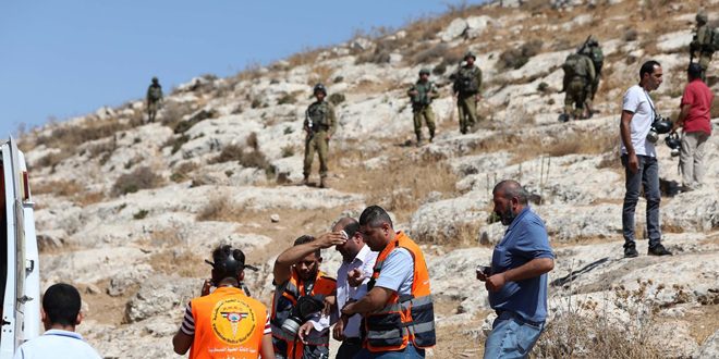 كما أصيب ثلاثة فلسطينيين بجروح والعشرات بحالات اختناق فيما اعتقل اثنان آخران جراء اعتداء قوات الاحتلال على الفلسطينيين بالرصاص وقنابل الغاز السام أثناء تشييعهم جنازة في حي عصيدة ببلدة بيت أمر شمال الخليل.