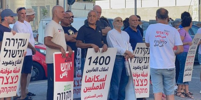 وذكرت وكالة وفا الفلسطينية أن المشاركين في الوقفة التي نظمتها القوى الوطنية الفلسطينية في مدينة يافا رفعوا الأعلام الفلسطينية ولافتات منددة بالمخططات الاستيطانية الرامية إلى تهجير وتشريد 1400 عائلة من المدينة لتهويدها.