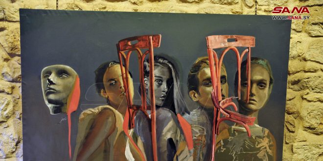 دمشق-سانا رصد الفنان التشكيلي أحمد الوعري العلاقات الإنسانية في العصر الراهن من خلال لوحاته