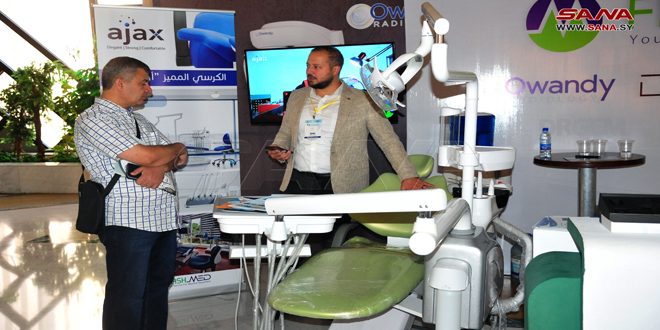 رافق المؤتمر معرض لأحدث التجهيزات الطبية المتعلقة بطب الأسنان شارك فيه عدد من الشركات المحلية التخصصية حيث لفت الصيدلاني جلال عثمان ممثل إحدى هذه الشركات التي تنتج مواد تعقيم وتنظيف خاصة بعلاج الأسنان إلى أهمية المعرض للتعريف بالمنتجات الطبية التي تم عرضها بحسومات تصل إلى 20 بالمئة بينما أشارت الدكتور نوار زهرة ممثل إحدى شركات بيع