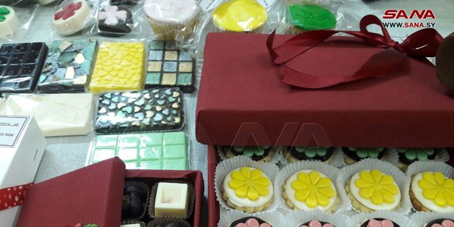 وتشرف كل من سمر عبود والدكتورة عايدة حداد على بيع منتجات الخل ودبس الرمان والحصرم والمخللات من إنتاج مطبخ الجمعية أو المحتاجات في المنازل وفي ركن آخر تعرض مونيا داوود منتجاتها من الإكسسوارات وأدوات الزينة التي تصنعها بحرفية واتقان حيث بدأت بمشروعها منذ نحو سنتين ووجدت بالمعرض فرصة للتعريف بمنتجاتها بعد النجاح الذي حققته بالمشاركة في المعرض السابق للجمعية فيما تقوم مهندسة العمارة مها حنا بتصنيع أشكال متنوعة من الشوكولا وكاب كيك لمختلف المناسبات وبإبداع لافت وتشارك بالمعرض للتسويق لمنتجها.