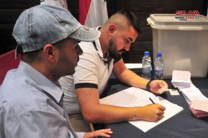 سمير زيدان أمين المركز الانتخابي في كلية الآداب والعلوم الإنسانية بجامعة دمشق قال: “إن المركز شهد منذ الساعة السابعة صباحاً إقبالاً جيداً من الطلاب والكادر التعليمي” معتبراً أن لمشاركة الشباب في الانتخابات أهمية بالغة لدفع البوصلة باتجاه الإعمار واختيار الأشخاص الذين يتمتعون بالكفاءة والنزاهة.