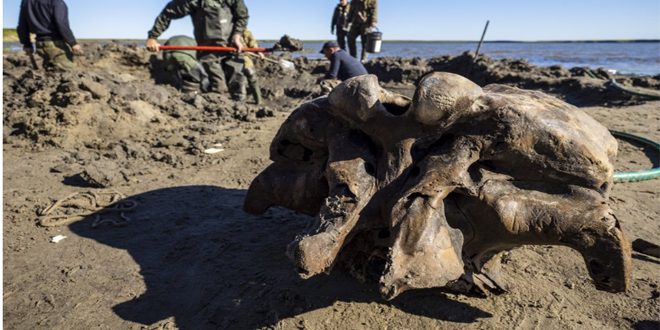 عثر علماء الآثار في جمهورية ياقوتيا الروسية على عظام فيل ماموث قتله الإنسان القديم في منطقة تشوراباتشينسكي بأقصى شمال شرق روسيا .