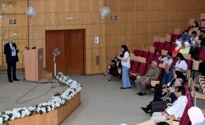 بدوره تحدث الأستاذ في كلية الصيدلة الدكتور خليل القوتلي خلال مشاركته بالندوة التي أقيمت في مدرج كلية الطب عن التشخيص المخبري للجراثيم والتشخيص المباشر والزرع والعزل الجرثومي كما تطرق إلى أنواع الصادات الحيوية للعلاج واللقاحات المستخدمة للوقاية.