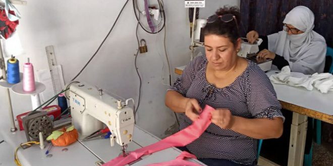 وقالت “عملت لفترة طويلة ضمن منزلي قبل أن أنتقل فيما بعد إلى العمل بمحل مستأجر حيث اشتريت ماكينة درزة بدعم من زوجي وشقيقي ثم ماكينة حبكة بعد حصولي على قرض صغير فيما وضعت ماكينة التريكو بتصرف إحدى السيدات للعمل عليها بمنزلها لمصلحة الورشة ولمساعدتها بتأمين فرصة عمل”.