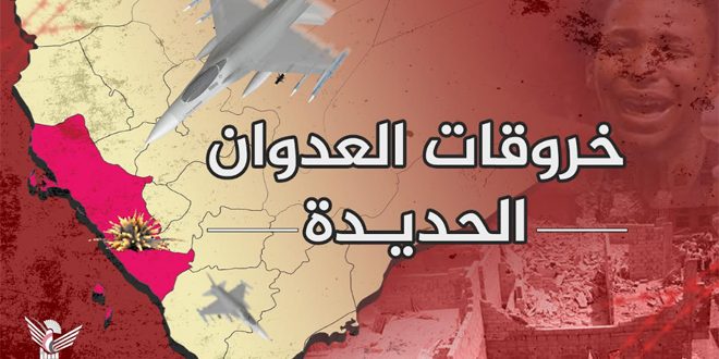 ونقلت وكالة الأنباء اليمنية سبأ عن مصدر في غرفة عمليات ضباط الارتباط والتنسيق لرصد خروقات قوى العدوان قوله في بيان اليوم: “إن الخروقات تضمنت تحليق طائرة تجسسية وخمسة خروق بقصف مدفعي و37 خرقاً بالأعيرة النارية”.