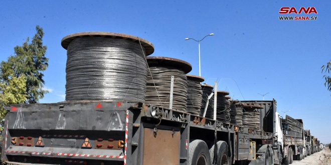 قافلة من المعدات والتجهيزات الكهربائية إلى حماة