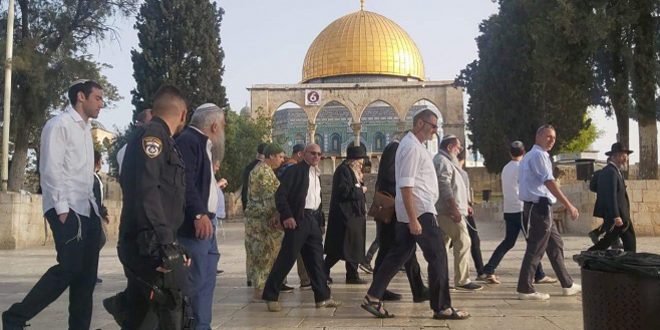 جدد عشرات المستوطنين الإسرائيليين اليوم اقتحام المسجد الأقصى في مدينة القدس المحتلة.