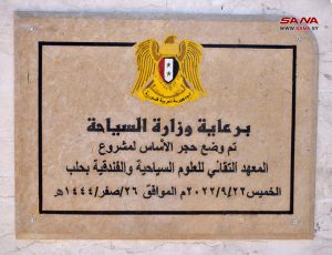 تم اليوم وضع حجر الأساس للمعهد التقاني للعلوم السياحية والفندقية في حي حلب الجديدة على مساحة طابقية تبلغ 12010 أمتار مربعة ويستوعب 400 طالب و700 متدرب.