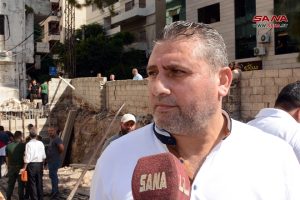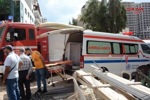 من جهته أشار قائد فوج الإطفاء المقدم مهند جعفر إلى أنه تم استدعاء آليتين من الفوج إلى الموقع لإنقاذ أحد العمال العالقين تحت الأنقاض ونقله إلى المشفى.