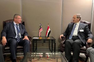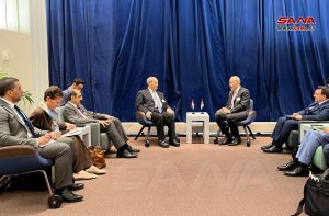 بحث وزير الخارجية والمغتربين الدكتور فيصل المقداد مع وزير الشؤون الخارجية الجزائري رمطان لعمامرة على هامش أعمال الدورة الـ 77 للجمعية العامة للأمم المتحدة آخر التطورات على الساحة العربية حيث كانت وجهات النظر متفقة بشأن ضرورة توحيد الصف العربي وتعزيز العمل العربي المشترك في مواجهة التحديات والأخطار التي تتعرض لها الدول العربية مع التأكيد على أن القضية الفلسطينية وتحرير الأراضي العربية التي تحتلها “إسرائيل” تبقى القضية الأساسية والمحورية.