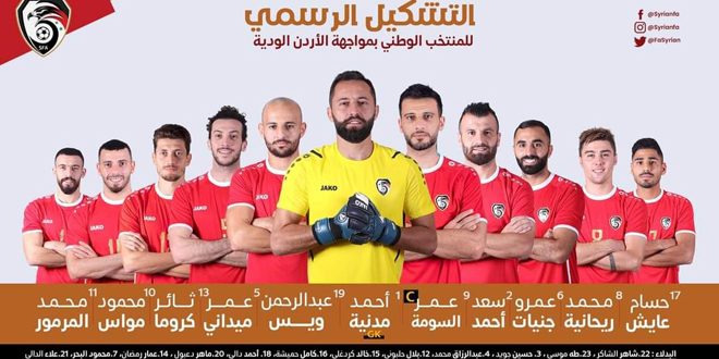أعلن مدرب منتخب سورية للرجال بكرة القدم حسام السيد التشكيلة التي سيخوض بها منتخبنا مباراته مع نظيره الأردني في وقت لاحق اليوم بالدورة الرباعية الدولية الودية في الأردن.