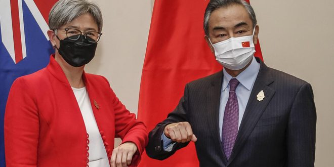 ونقلت شينخوا عن وزير الخارجية الصيني وانغ يي قوله خلال لقائه نظيرته الاسترالية بيني وونغ على هامش الدورة السابعة والسبعين للجمعية العامة للأمم المتحدة “إن الصين مستعدة للعمل مع أستراليا على معالجة الخلافات بشكل صحيح من أجل تعزيز التنمية السليمة والمستقرة للعلاقات الثنائية”.