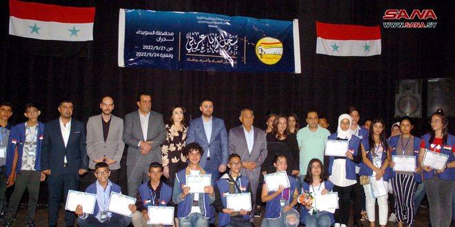 وفي مجال “اعرف وطنك سورية تاريخ وحضارة” لطلاب الصف الثامن فاز شهد أيمن أبو حمدان من السويداء وأحمد ثائر جديد من ريف دمشق وأحمد سامي العسس من حمص.