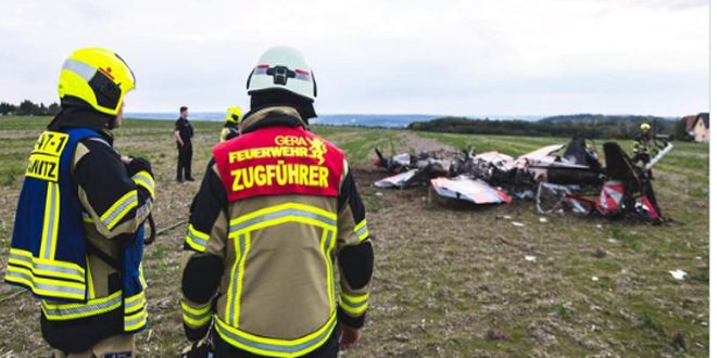 لقي شخصان مصرعهما إثر اصطدام طائرتين خفيفتين بالقرب من مطار لويمنيتس في مدينة جيرا في ولاية تورينغن الألمانية.