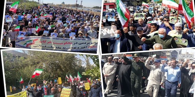 شهدت عدة مدن ومحافظات إيرانية اليوم مسيرات شعبية حاشدة رفضاً وتنديداً بأعمال التخريب والشغب التي وقعت في بعض المدن الإيرانية الأسبوع الماضي.