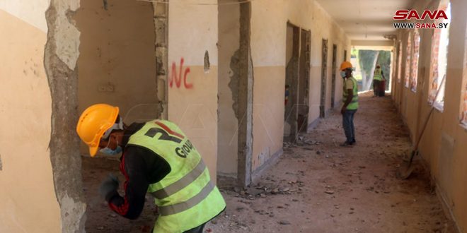 باشرت مديرية الصحة بدير الزور بالتعاون مع منظمة الصحة العالمية مشروع إعادة تأهيل المشفى الوطني بمدينة الميادين بريف المحافظة الشرقي من الأضرار التي تعرض لها جراء الإرهاب.