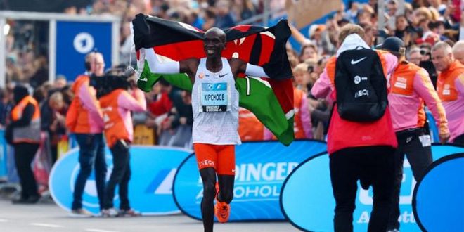 فاز العداء الكيني إليود كيبشوج اليوم في سباق ماراثون طوكيو للرجال محققاً رقماً قياسياً بفوزه بأربعة من آخر ستة سباقات كبرى للماراثون.