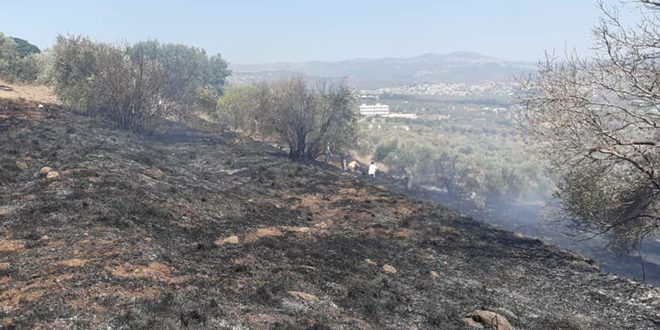 وأوضح رئيس دائرة الحراج الدكتور فادي ديوب في تصريح لمراسلة سانا أن حريقاً نشب في أرض زراعية وحراجية بقرية الحقبانية في منطقة دريكيش، وأتى على مساحة ثلاثة دونمات حراجية تضمنت سندياناً وبلوطاً وغيرها، إضافة إلى دونمين مزروعين بأشجار الزيتون.