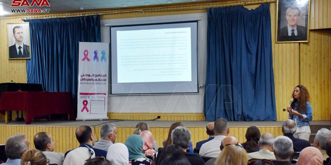 نظم البرنامج الوطني للتحكم بالسرطان بالتعاون مع محافظة حمص والجمعيات الخيرية والمنظمات الأهلية ورشة تعريفية عن الحملة الوطنية للتقصي عن سرطانات الثدي وعنق الرحم والبروستات قبل انطلاقها في محافظة حمص، وذلك في قاعة سامي الدروبي بالمركز الثقافي في المدينة.