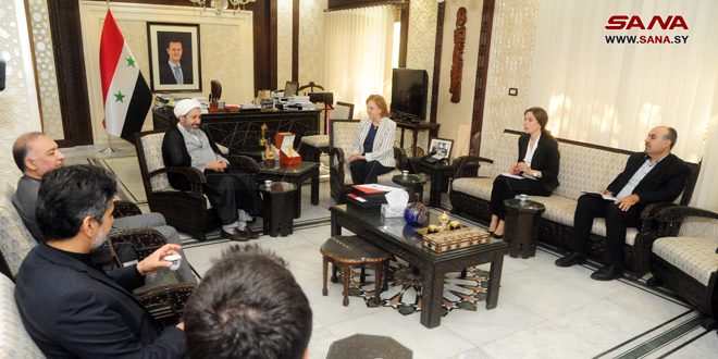 بحثت وزيرة الثقافة الدكتورة لبانة مشوح مع رئيس رابطة الثقافة والعلاقات الإسلامية في إيران محمد مهدي إيماني بور تطوير العلاقات الثقافية وتوسيع آفاقها وسبل التعاون في جميع المجالات الثقافية، وتبادل المنتج الثقافي والخبرات بين البلدين الصديقين.