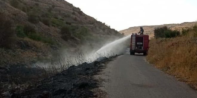 وأوضح قائد فوج الإطفاء فادي الداوود لمراسل سانا أن الحريق امتد على مساحة تقدر بنحو 20 دونماً ضمن أعشاب يابسة في منطقة ذات طبيعة صعبة تنتشر فيها كروم زراعية، وأشجار حراجية، وقد تمت السيطرة عليه وإخماده وإجراء عمليات التبريد.