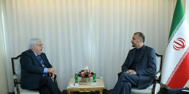 بحث وزير الخارجية الإيراني حسين أمير عبد اللهيان مع منسق الأمم المتحدة للشؤون الإنسانية مارتن غريفيث آخر تطورات الأوضاع في سورية واليمن وأفغانستان.