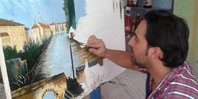 وقد دفعه شغفه بالرسم والنحت الى قضاء معظم أوقاته في نحت الشلالات والديكورات مستخدماً الإسمنت والجبس والألوان لتعتيق العمل، بحيث لا يفقد قيمته كمادة منحوتة مستخدما اللونين الزيتي والنحاسي، أما في لوحاته فاستخدم الألوان الزيتية والمائية راسماً لوحات شخصية وطبيعية إضافة إلى الحارات الدمشقية القديمة بتفاصيلها المتناغمة، فشكلت مصدر رزق له عبر طلب لوحاته وشرائها داخل سورية وخارجها.