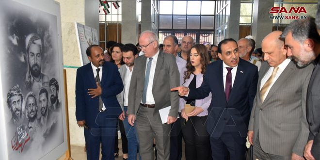 وجسد المعرض الذي أقيم احتفاء بذكرى الثورة في اليمن، وأعياد تشرين المجيدة في سورية، تضحيات الشهداء الذين رسموا بدمائهم الطاهرة دروب النصر والحرية، دفاعاً عن قضايا الأمة العربية، وذلك في صالة المعارض في المكتبة المركزية بجامعة حلب.