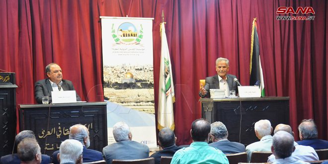 أقامت مؤسسة القدس الدولية “سورية واللجنة الشعبية لدعم الشعب الفلسطيني ومقاومة المشروع الصهيوني وفصائل المقاومة الفلسطينية بدمشق اليوم، محاضرة بعنوان “القدس في الإعلام الغربي”، وذلك في ثقافي أبو رمانة بدمشق.