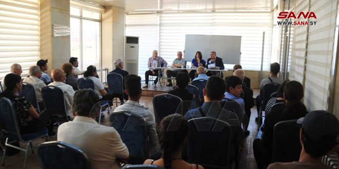 واستعرض عضو مكتب فرع اتحاد الكتاب فرحان الخطيب بدايات المسرح منذ القديم، ونشأة المسرح السوري على يد “أبو الخليل القباني” وكيف تطورت الحركة المسرحية، واتخذت شكلها الحضاري، وما برز من اتجاهات فكرية خلال ذلك، وأهم كتابها ومسرحييها مع الاهتمام بمسرح الطفل وخاصة خلال سنوات الحرب.