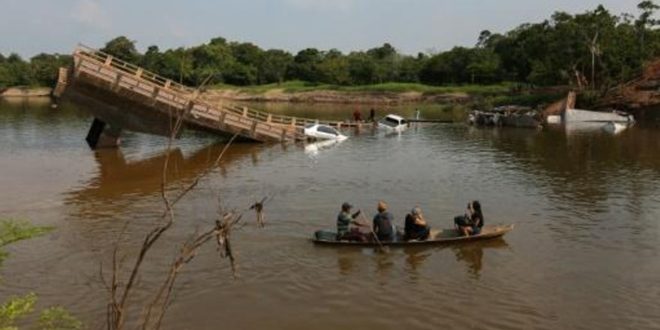 لقي ثلاثة أشخاص على الأقل مصرعهم، وأصيب آخرون بجروح جراء انهيار جسر في ولاية أمازوناس شمال غرب البرازيل.