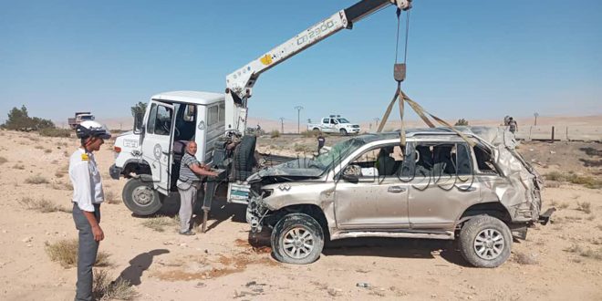 وذكرت وزارة الداخلية في بيان تلقت سانا نسخة منه أنه ونتيجة للسرعة الزائدة وعدم الانتباه من قبل السائق تدهورت سيارة سياحية خاصة نوع تويوتا لاند كروزر على طريق عام حمص دمشق، بعد كازية العباس بنحو 500 متر ما أدى إلى إصابة ستة أشخاص.