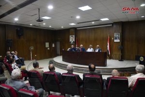 أقامت اللجنة الشعبية العربية السورية لدعم الشعب الفلسطيني ومقاومة المشروع الصهيوني بالتعاون مع مؤسسة القدس الدولية “سورية” وفصائل المقاومة الفلسطينية اليوم ندوة بعنوان: من سلب اسكندرون إلى سلب فلسطين وذلك على مدرج دار البعث بدمشق.