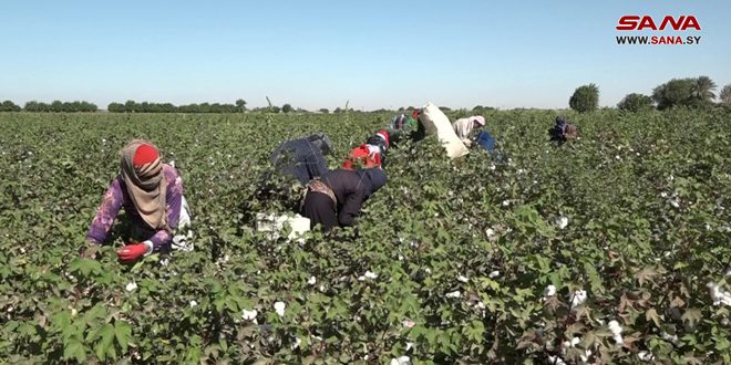 وبين مدير زراعة دير الزور المهندس فؤاد عابدون في تصريح لمراسل سانا أن الفلاحين بدؤوا قبل أيام عمليات قطاف محصول القطن في كل مناطق المحافظة، لافتاً إلى أن الحالة العامة لمحصول القطن هذا العام جيدة، ومبشرة، ولم يتم تسجيل إصابات حشرية، وقد تم تقديم البذار والأسمدة وإجراء المكافحة الحيوية.