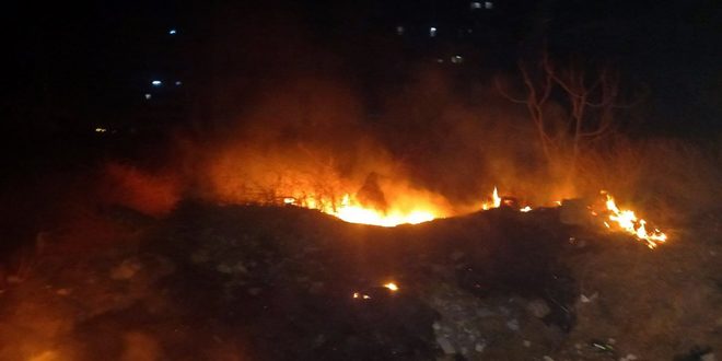 أخمد عناصر فوج الإطفاء في اللاذقية ، حريقاً اندلع في أراض زراعية بين منطقتي فطيرو وكرسانا بريف اللاذقية.