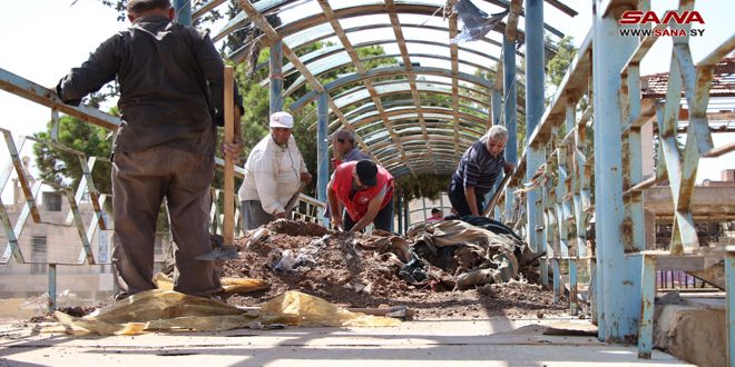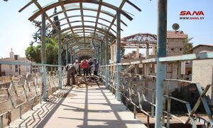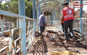 بدأ مجلس مدينة درعا وفرع الهلال الأحمر العربي السوري اليوم أعمال إعادة تأهيل جسر المشاة الأزرق بين حي شمال الخط ودرعا المحطة.